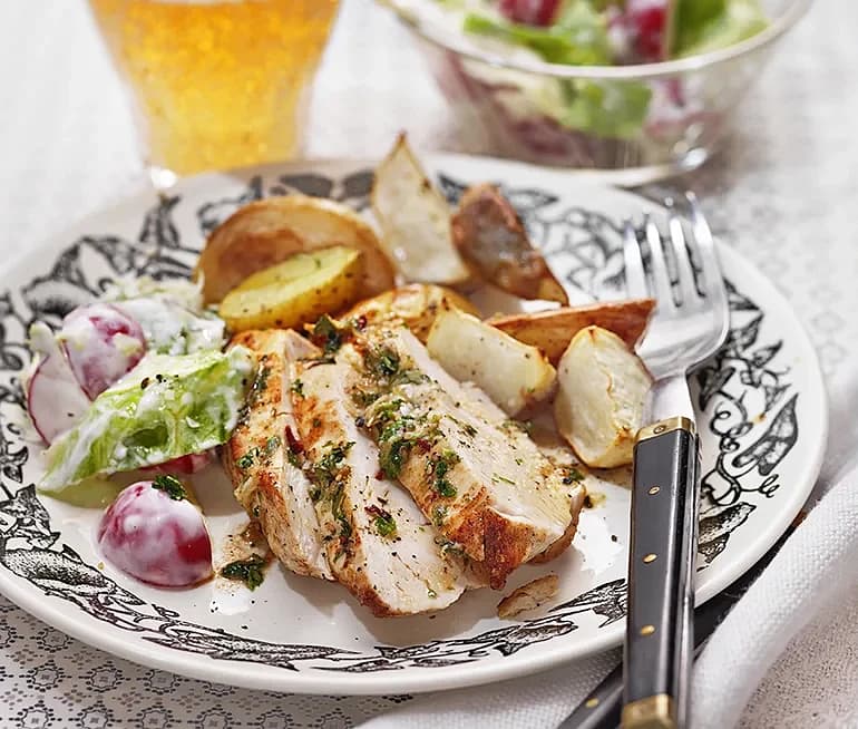 Ugnsbakad kyckling med klyftpotatis