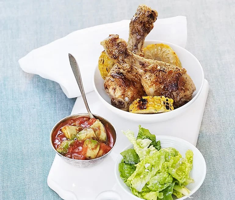 Rostad majs och kyckling med avokadosalsa