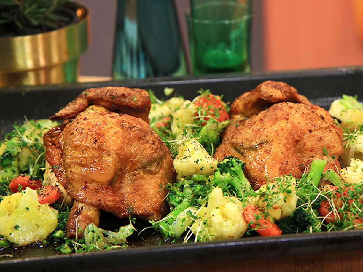 Vitlöksstekt kyckling med tomat- och rucolasallad
