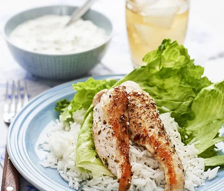 Oreganostekt kyckling med gurkröra