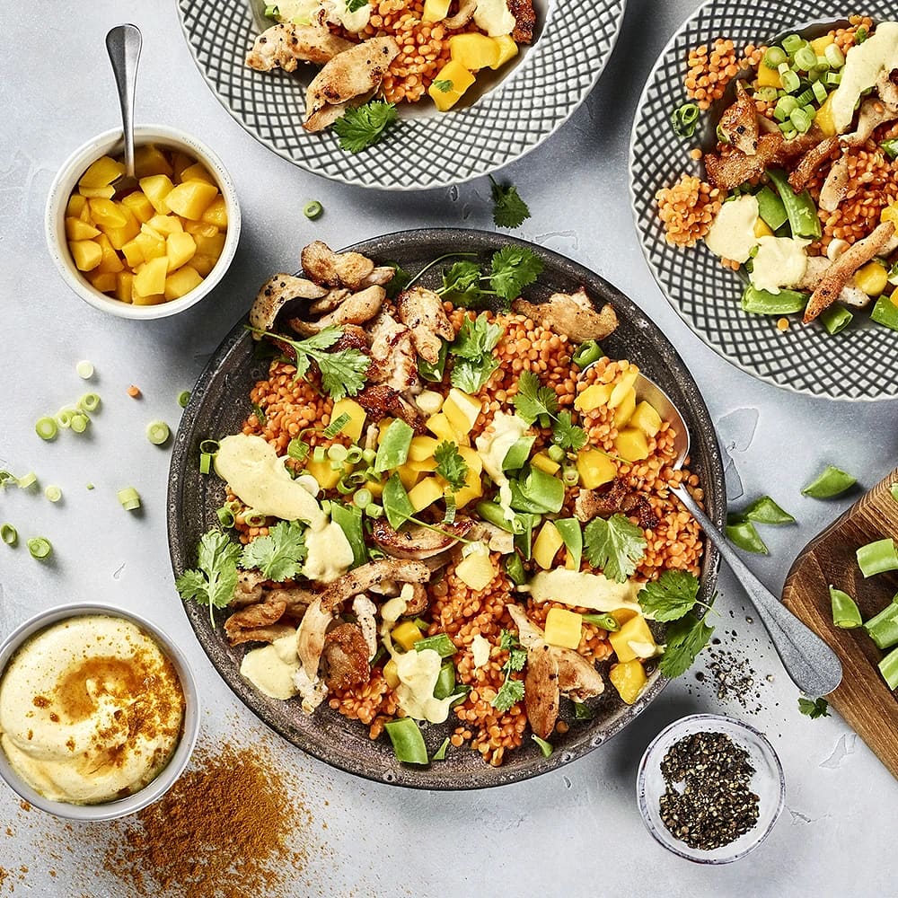 Linssallad med kyckling och curryyoghurt