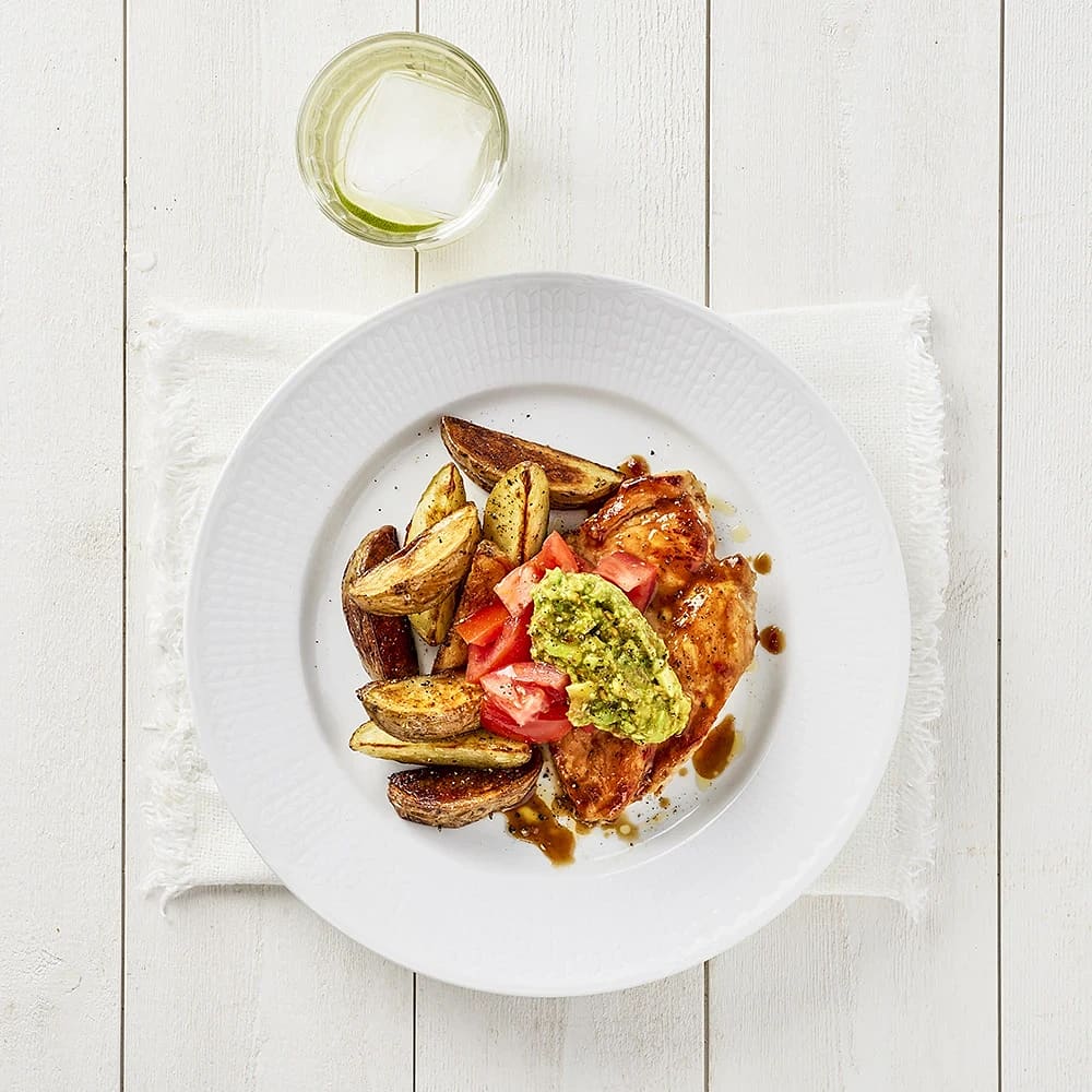 Glacerad kyckling med avokadoröra