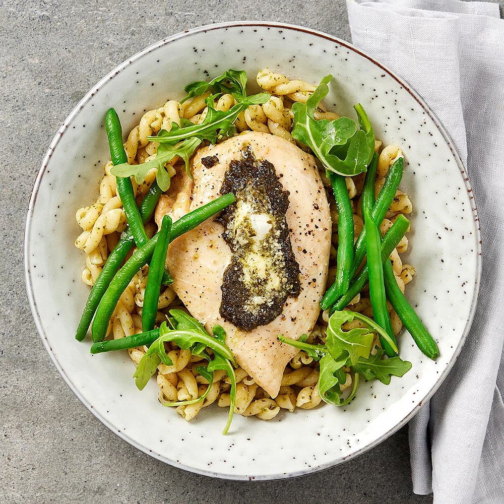 Pestofylld kyckling med pasta