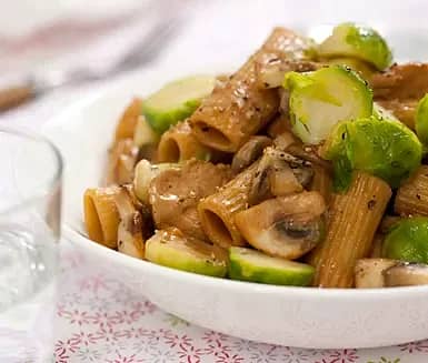 Julpasta med kyckling och stekt brysselkål