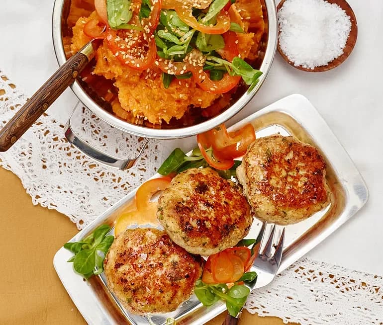 Kycklingbiffar med sötpotatiskross