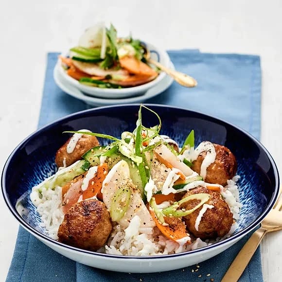 Kycklingbullar med grönsaksyoghurt