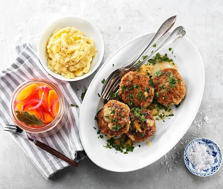 Kycklingburgare i ugn med persilja- och Västerbottensost