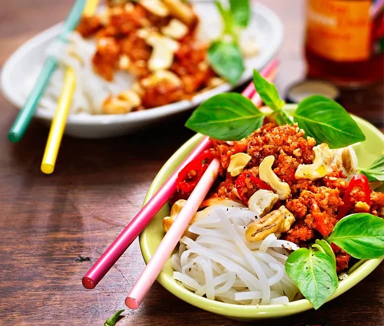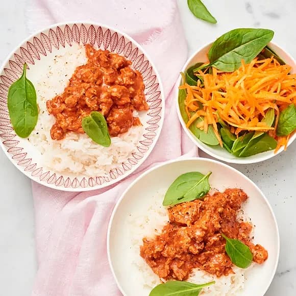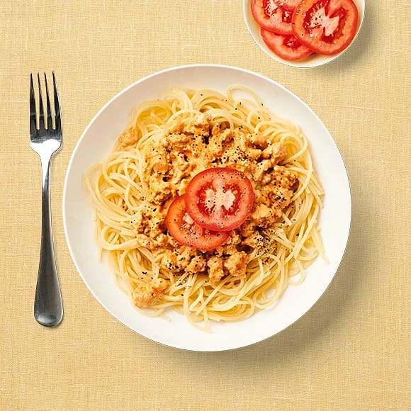 Spaghetti med kryddig kycklingfärssås