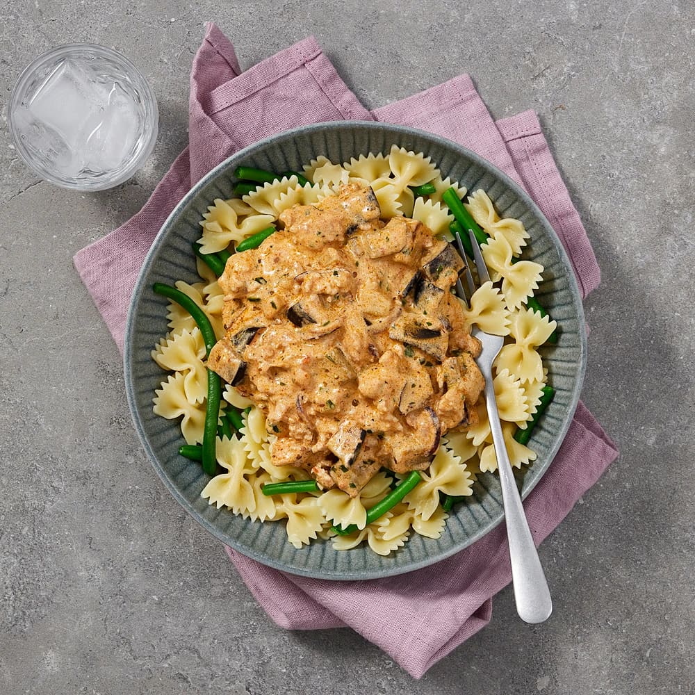 Kycklingfärssås med pasta och tomater