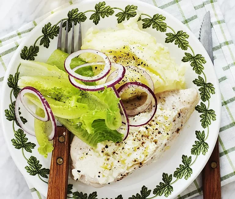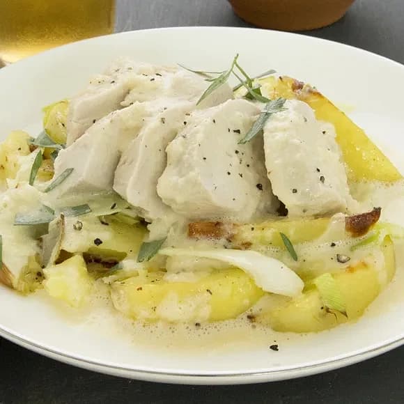 Rimmad kycklingfilé med cidersås och dragonpotatis