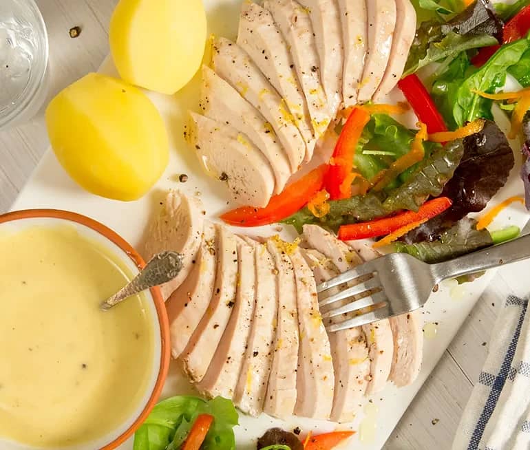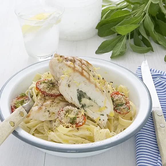 Citron- och salviafylld kycklingfilé och medelhavssallad