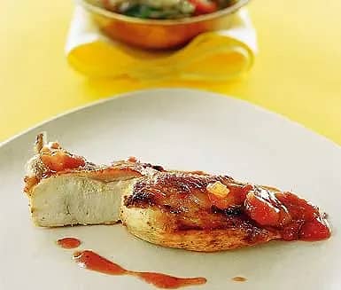 Parmalindad kycklingfilé med basilika, vitlök och ljummen tomatsallad