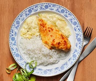 Kycklinggratäng med purjolök, dijonsenap och ost