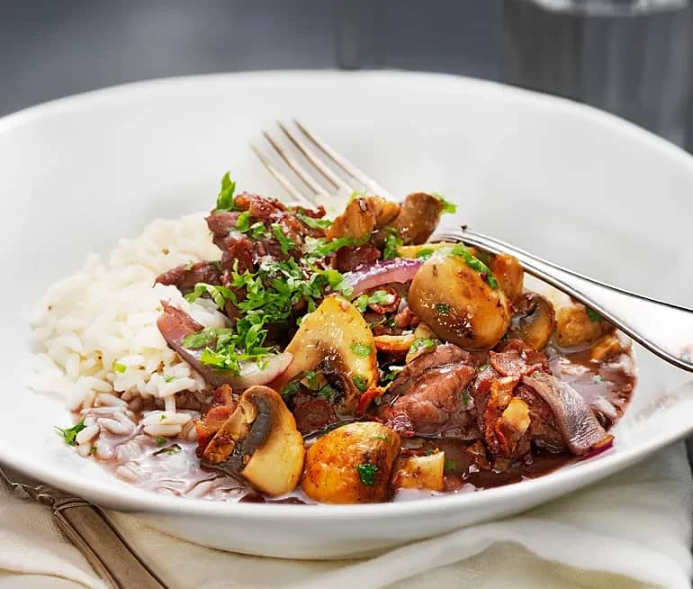 Mustig kycklinggryta med champinjonsallad