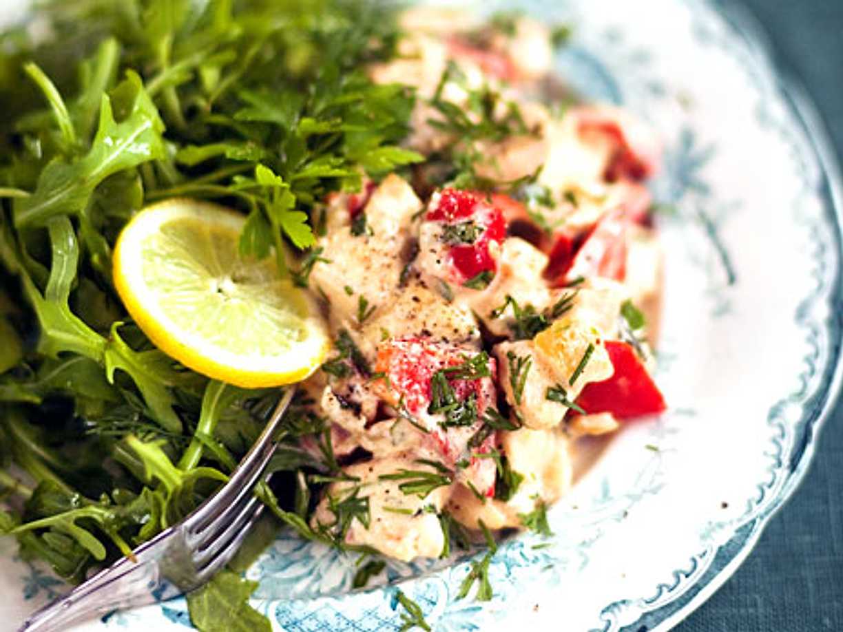 Kycklinggryta med gräddfilsdressing