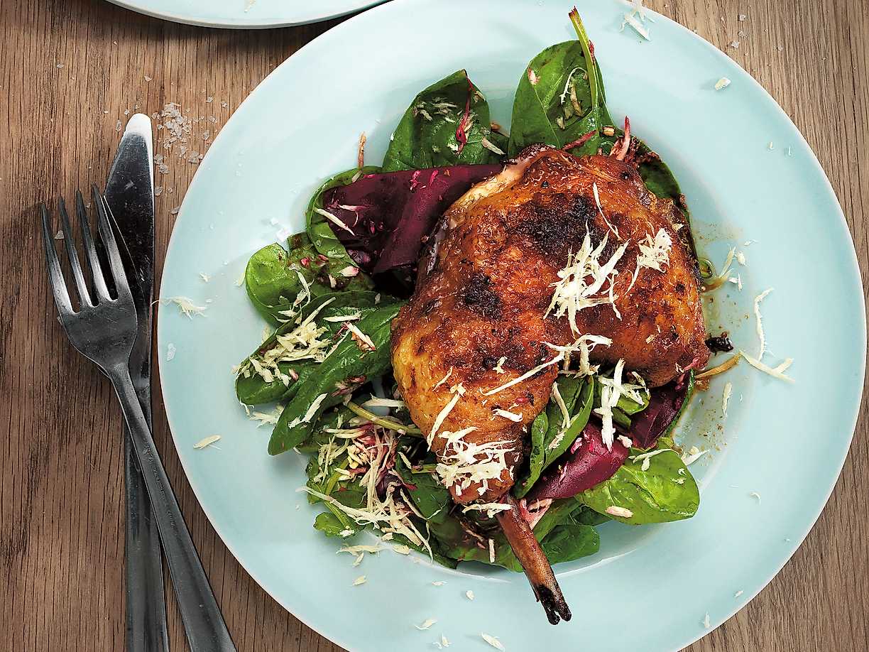 Citronstekt kycklingklubba med spenat- och rödbetssallad