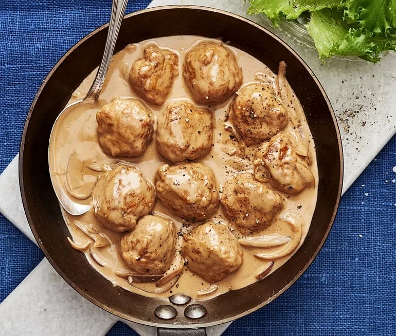 Kycklingköttbullar i lökgräddsås