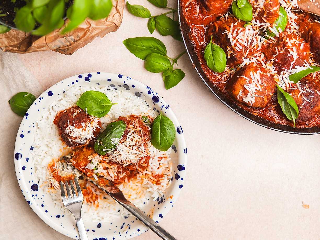 Kycklingköttbullar i krämig tomatsås
