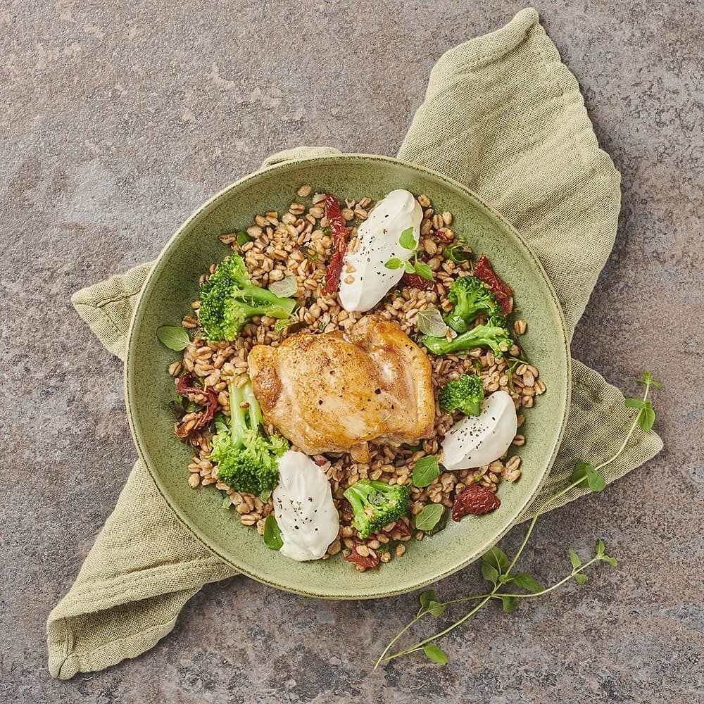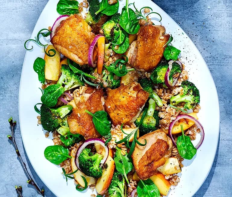 Stekt kycklinglårfilé med grynsallad