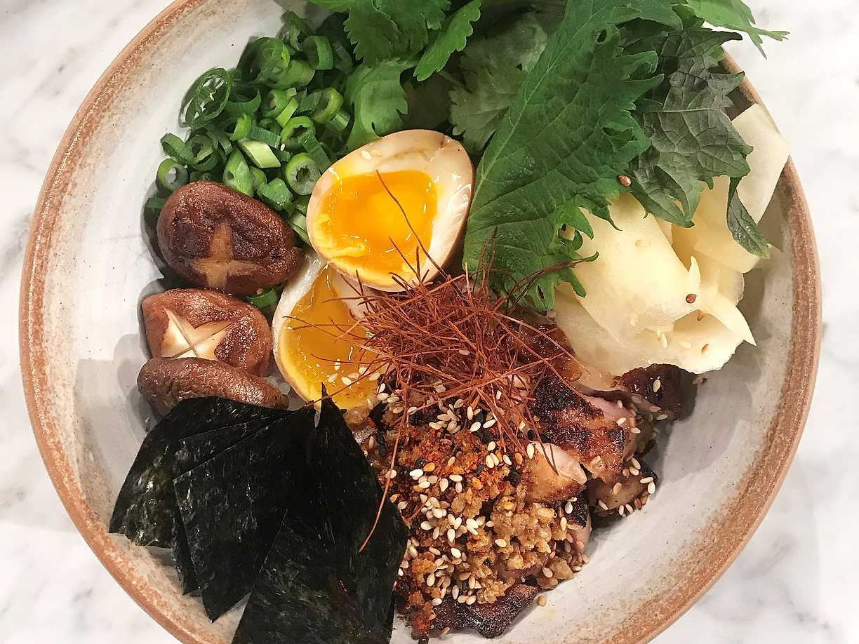Donburi med kycklinglårfilé och shiitakesvamp