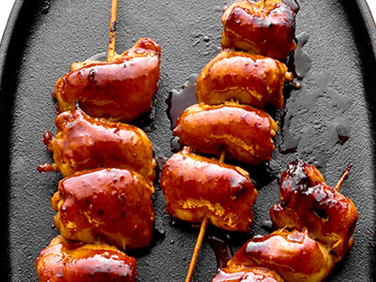 Glaserade spett med kycklinglårfilé