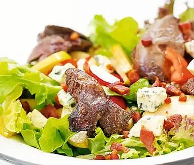 Sallad med ädelost, päron och kycklinglever