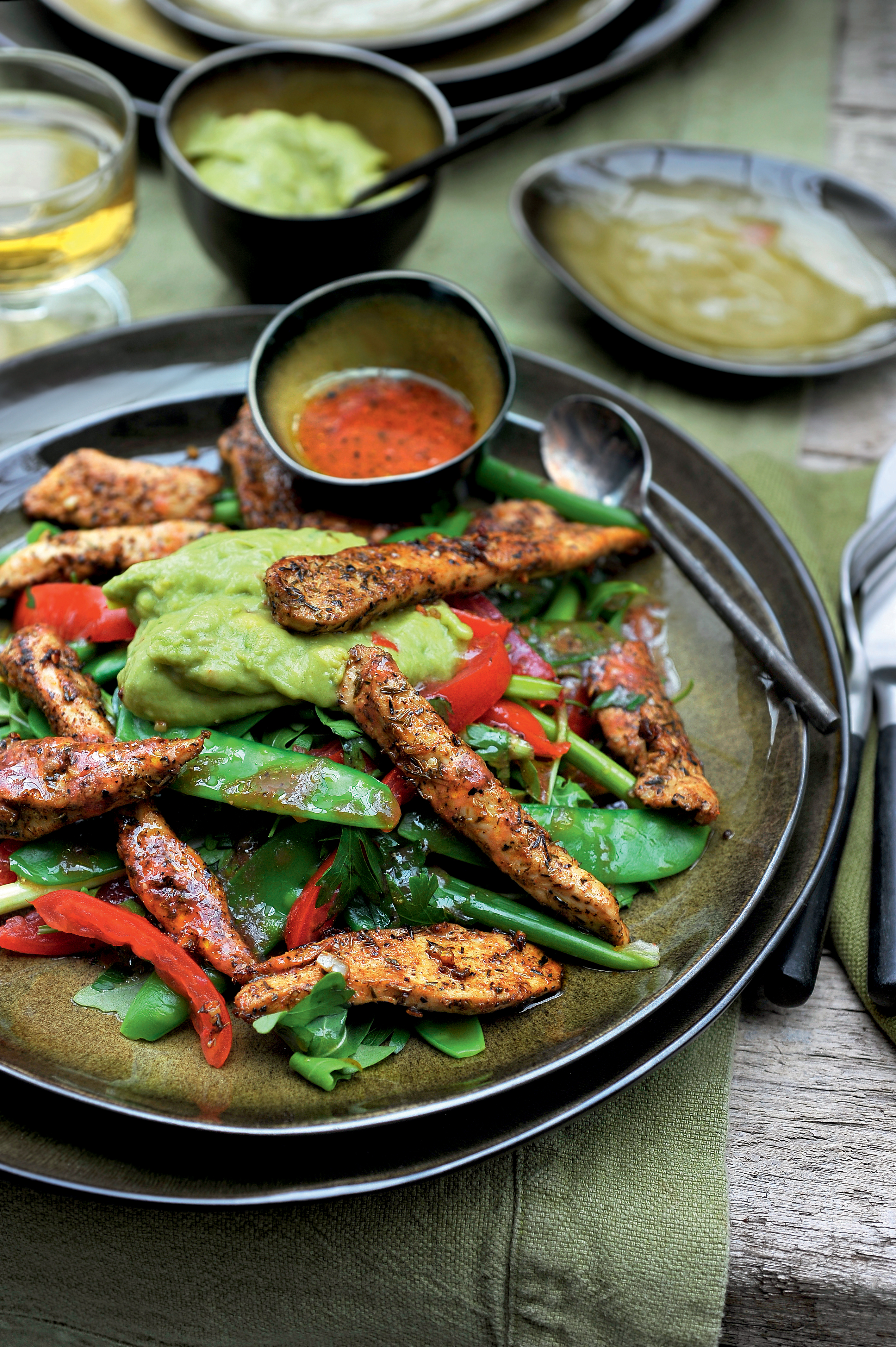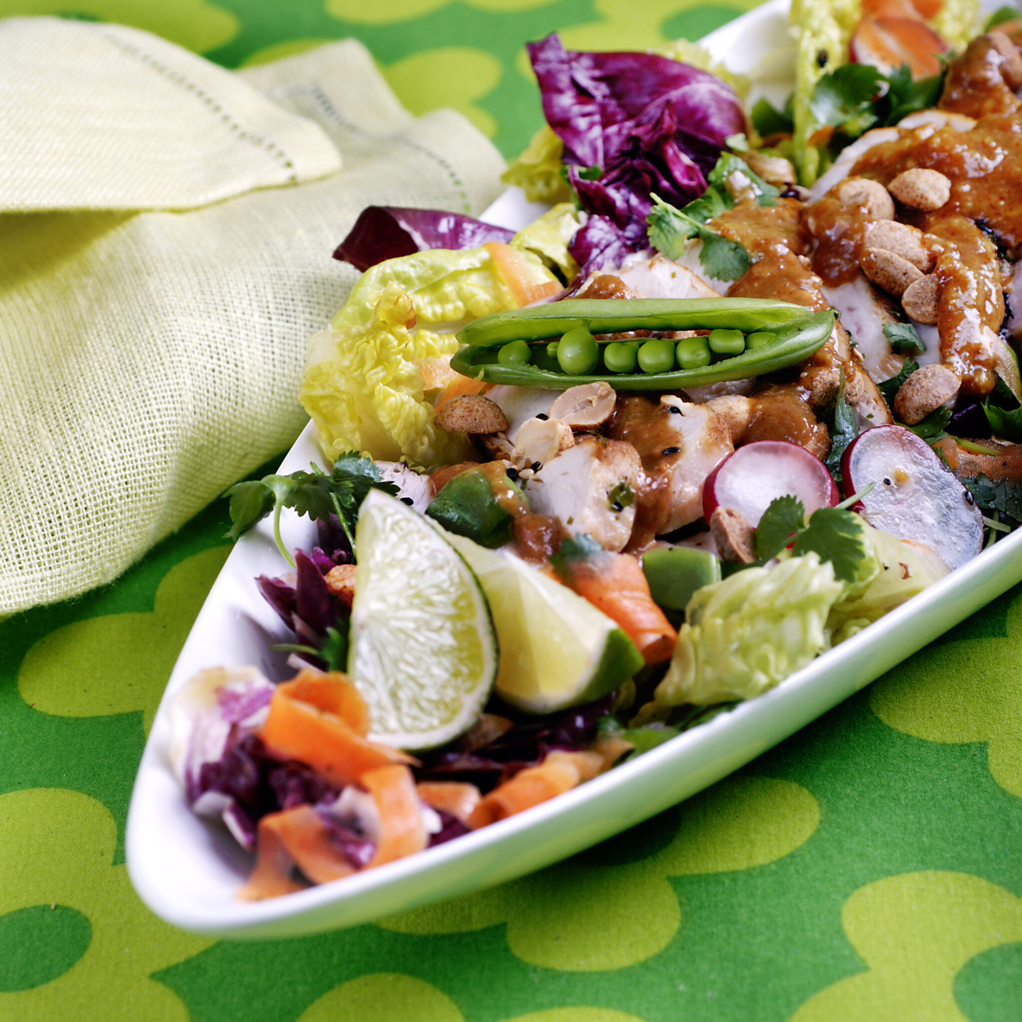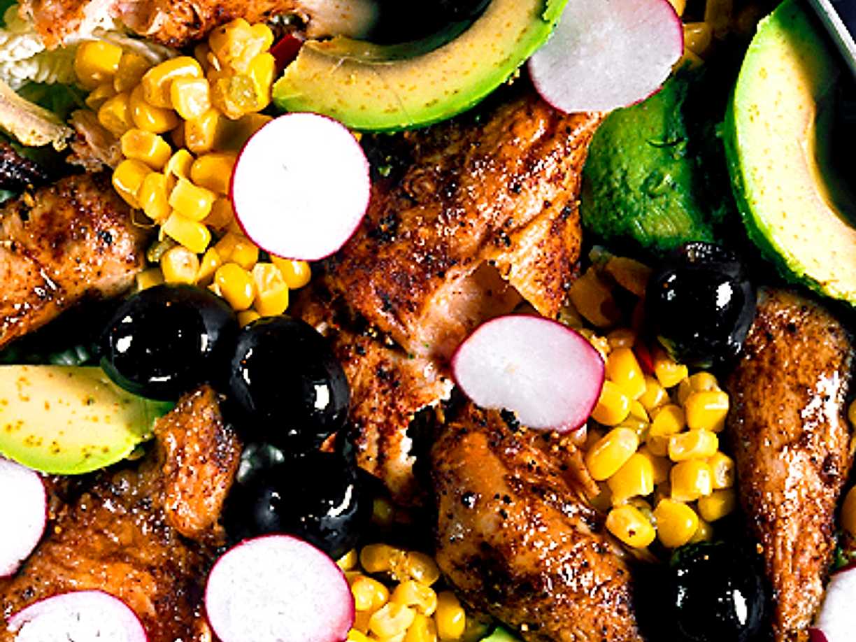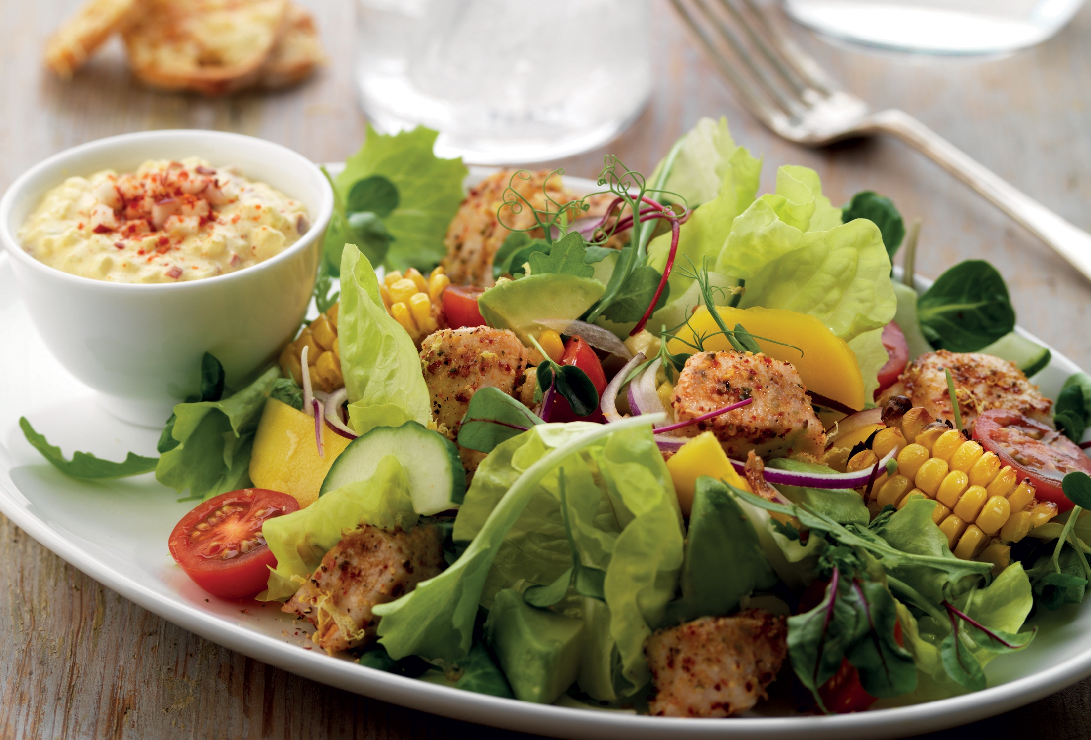 Ljummen kycklingsallad med sötpotatis och mangodressing
