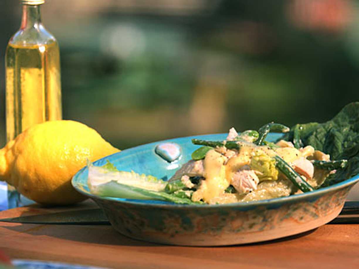 Italiensk kycklingsallad med grillade grönsaker och parmesan