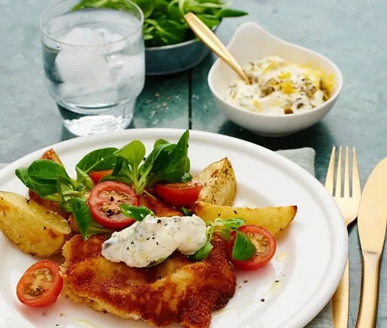 Frasig kycklingschnitzel med kapris- och citronsås