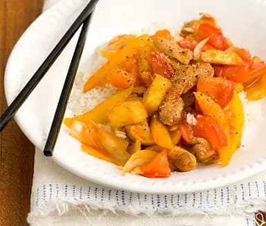Sötsur kycklingwok med färsk ananas