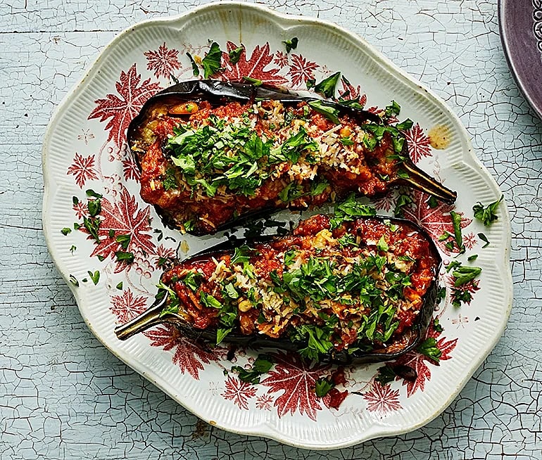 Aubergine med lamm, pinje och parmesan