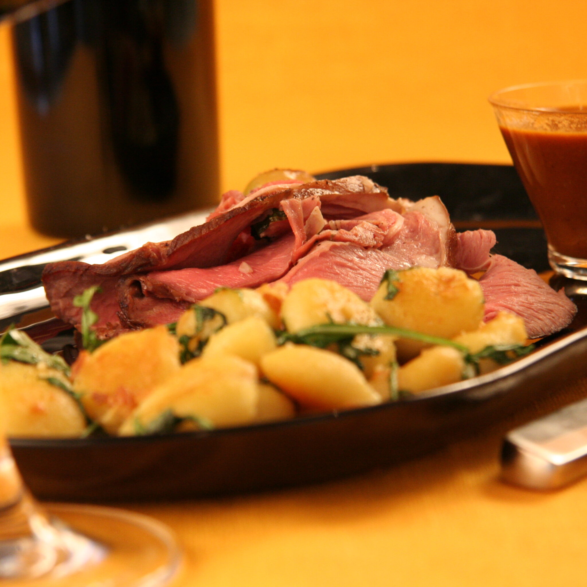Lamm med pesto, rödlöksmarmelad och potatiskaka