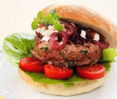 Lammburgare med karamelliserad rödlök