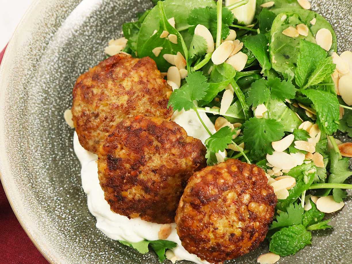 Indiska lammfärsbiffar med myntasallad