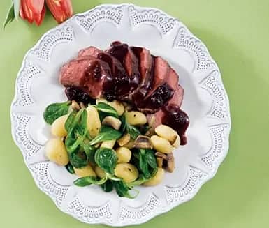 Lammfilé med chili- och chokladspetsad rödvinssås och palsternacka