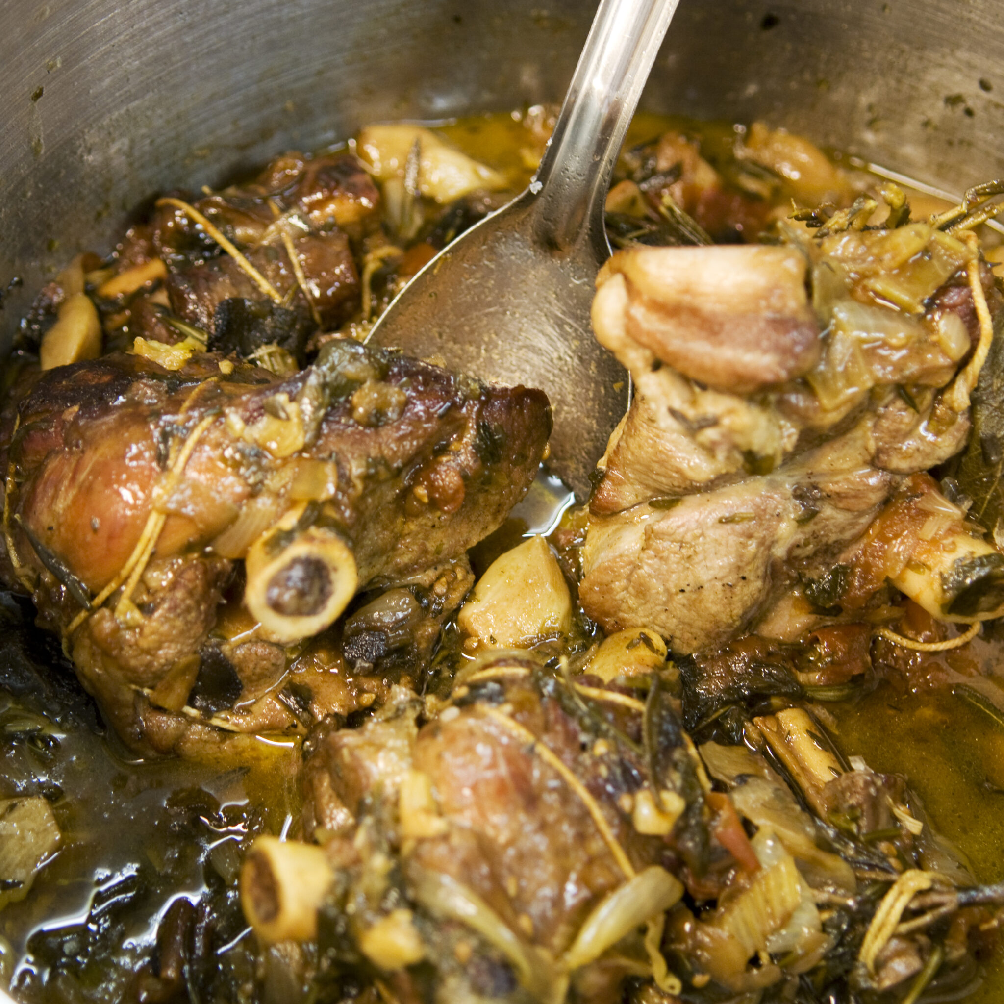 Rödvinskokt lammlägg med oxmärgsgrönsaker