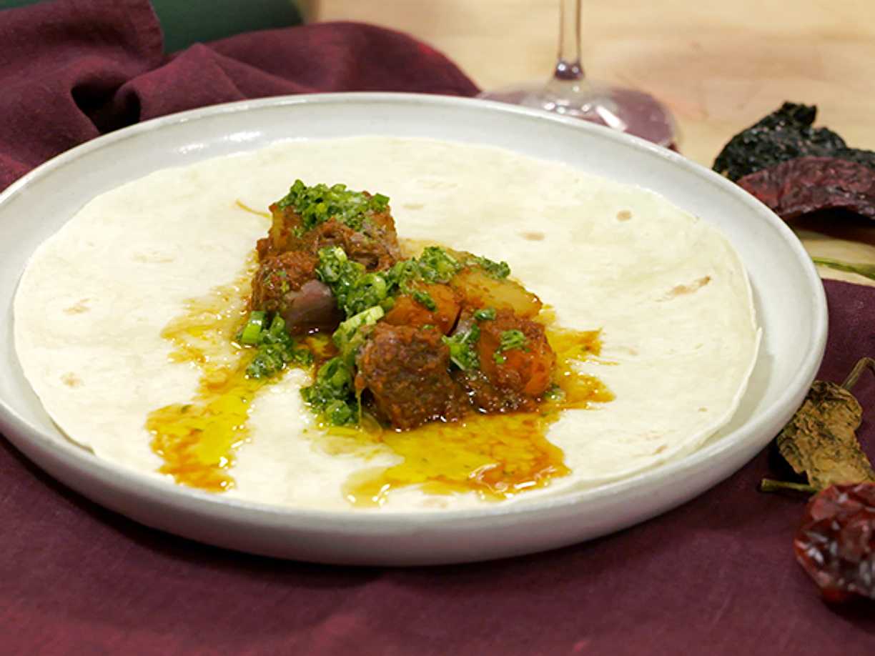 Lammlägg med rödvin, rostade rotfrukter och fetaostkräm