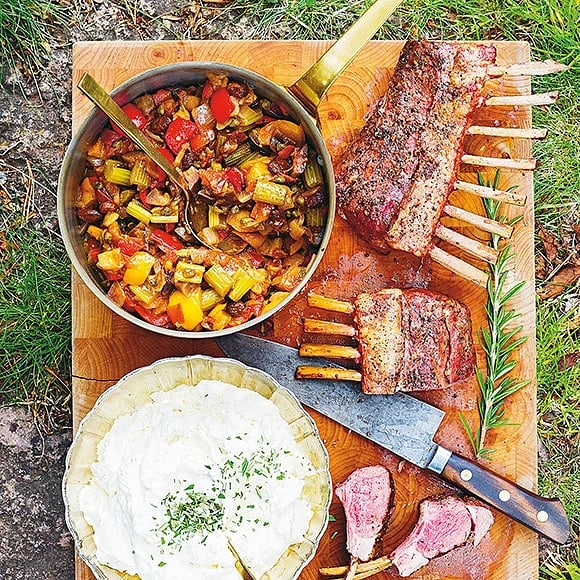 Grillade lammracks med caponata och getostcrème