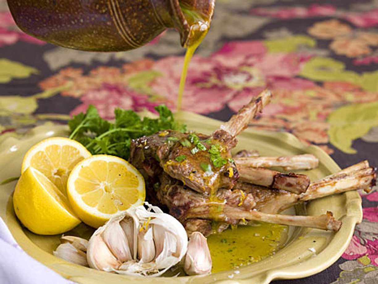 Vitlöksmarinerade lammracks med citron och mynta