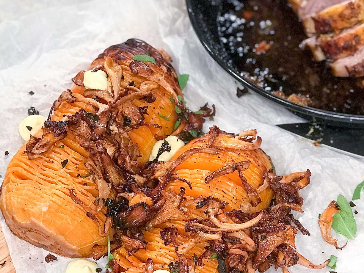 Grillade lammracks med hasselbackspumpa och svamp