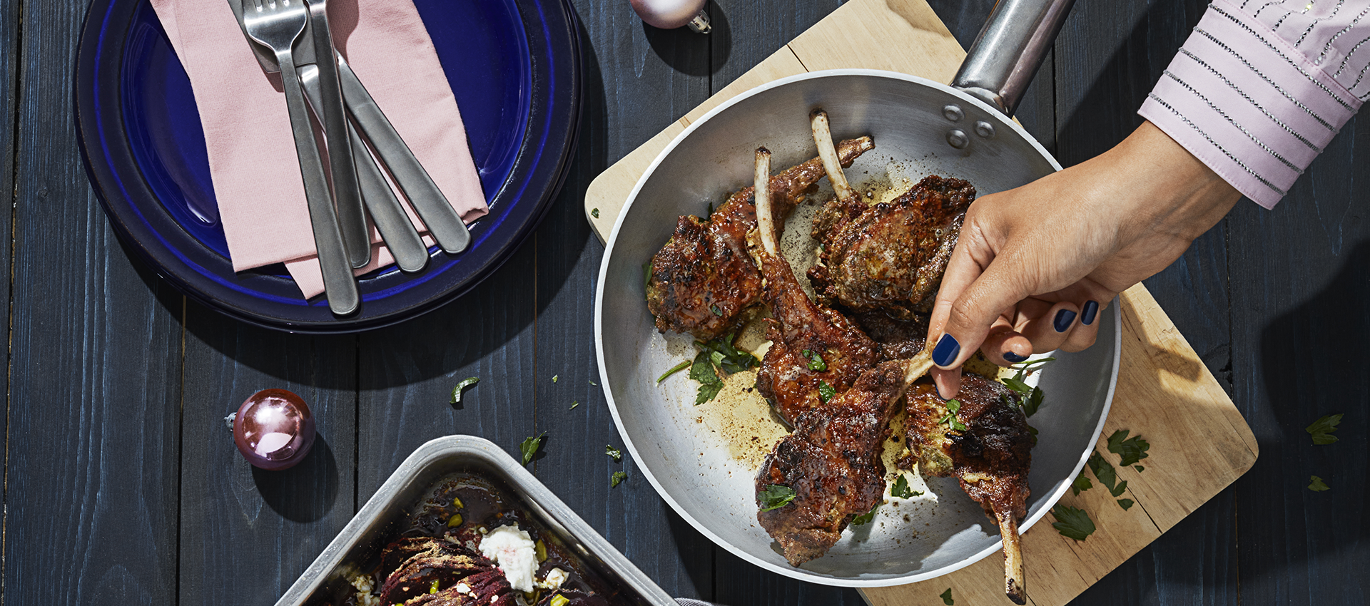 Lammracks "ta för dig-style" på bricka