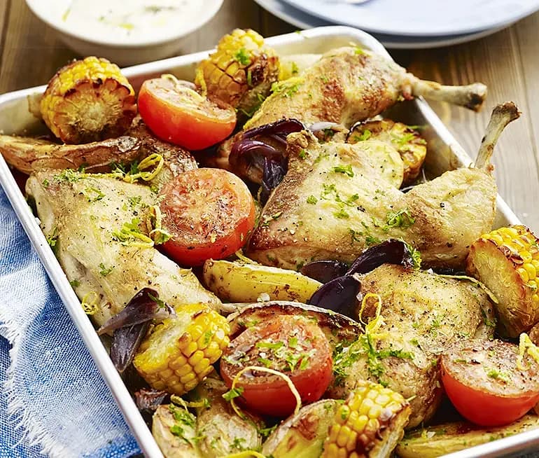 Kyckling i långpanna med vitlökskräm
