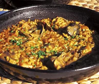 Skaldjurspaella i långpanna