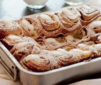 Kanelbullar i långpanna med vaniljkräm