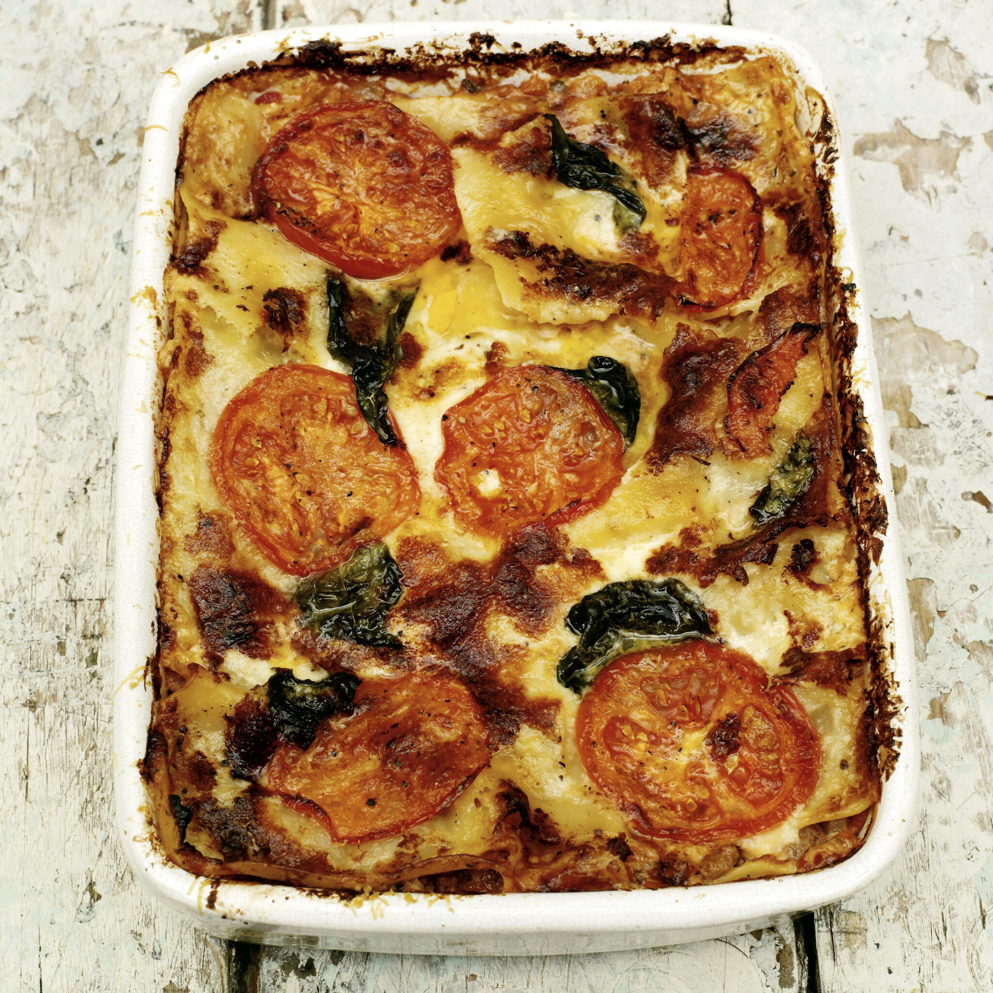 Snabb lasagne med ricotta, tomat, basilika