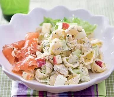 Råraka med kallrökt lax, pepparrotsfil och kryddost
