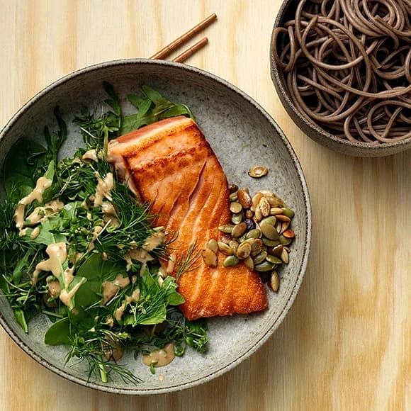 Ugnsbakad lax ”tarator” med frisk yoghurt- och tahinisås