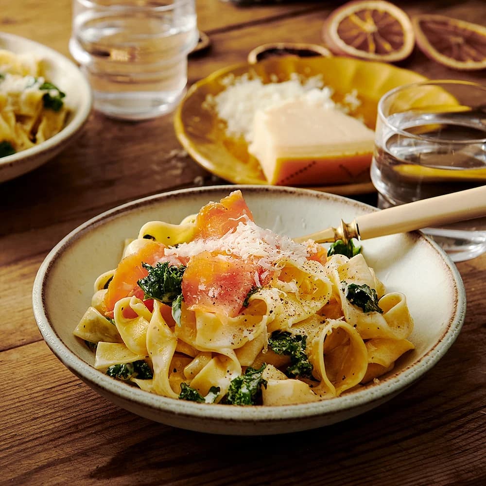 Dillbakad lax med senapsstuvad grönkål och potatis