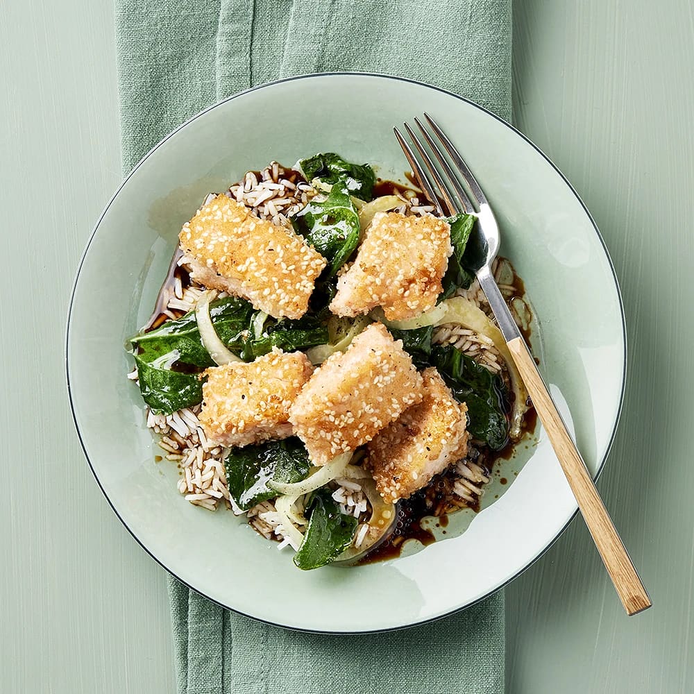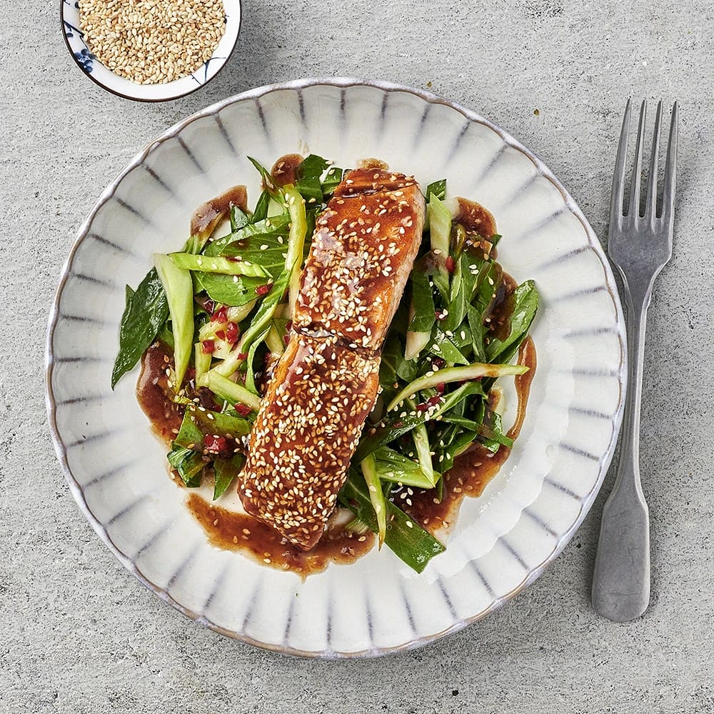 Ugnsbakad lax med picklad fänkål och örtdressing
