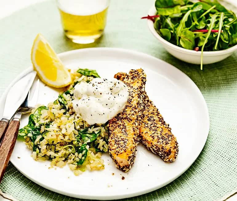 Sesamstekt lax med örtcrème